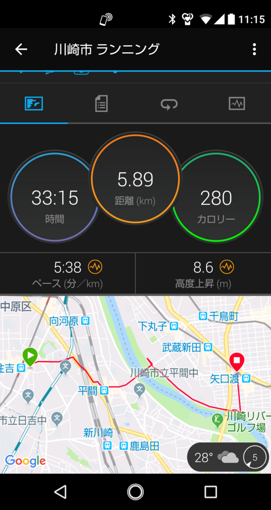 で、6㌔でJogペースに落として様子を見ても上げられる感じがしなかったので、最後に坂道ダッシュを5本やって終了😓